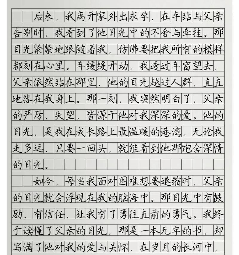 父亲,是我心中永远的英雄。他为家庭默默奉献,为子女无微不至地关怀,是我一生中最重要的人。在这个快节奏的时代,我们往往忽略了身边最值得珍惜的东西。本文将以父亲为主题,回忆他那无尽的爱和一生奋斗的过程。