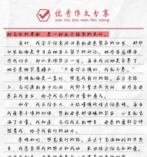 亲情是一种浓浓的情感,它让我们感受到家的温暖。父母的爱是最浓郁的爱,他们用家庭的力量凝聚起我们,让我们感受到家的温馨。